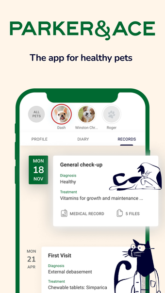 Daarnaast biedt Parker & Ace de mogelijkheid om dagelijkse activiteiten van uw huisdier bij te houden, wat helpt bij het sneller identificeren van mogelijke gezondheidsproblemen. De app zorgt ervoor dat gebruikers nooit een afspraak of medicijnherhaling vergeten. Bovendien kunnen eigenaren gepersonaliseerd advies en wellnessplannen ontvangen, zodat ze hun huisdier gezond en gelukkig kunnen houden.